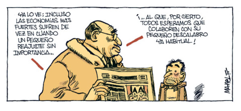 Hemeroteca ColumnasTribunasViñetas Viñeta de Público07/02/2008 06:00 Comparte Zapatero minimiza la crisis