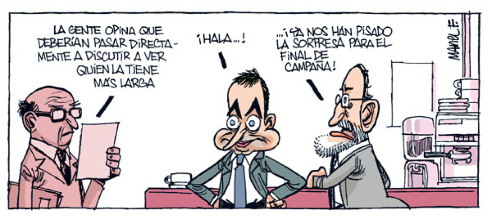 Hemeroteca ColumnasTribunasViñetas Viñeta de Público13/01/2008 06:00 Comparte Zapatero Vs. Rajoy (y viceversa)