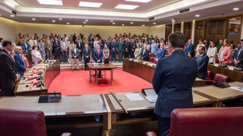 Todos lo hacen respetuosamente. Como debe ser. Menos cuatro. Los cuatro concejales y concejalas de Vox, recién elegidos por ti, que se quedan sentados. Impertérritos. Como estatuas de sal. Obedientes, disciplinados, ante las órdenes que algún energúmeno desalmado les ha dado. Estatuas de mármol, de granito, para las que es más importante acatar una consigna que perder la dignidad de ser humano. Todos los valores que hacen la tierra habitable. Los valores para no devorarnos a dentelladas como fieras. Los valores para evitar nuestra extinción y nuestra masacre.