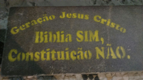 Hace unos días, paseando por la playa brasileña de Ipanema en Rio de Janeiro, me sorprendí con unas pintadas que se repetían a lo largo del carril para bicicletas, en las que se podía leer “Biblia, SIM, Constituiçâo, NÂO”. Este mensaje no es una simple anécdota, especialmente si se tiene en cuenta que, en una reciente encuesta realizada por CNT/MDA, el 40,1% de los ciudadanos brasileños afirmaban que confían más en la Iglesia que en otras instituciones laicas del Estado (jueces, gobierno, parlamento, policía…).
