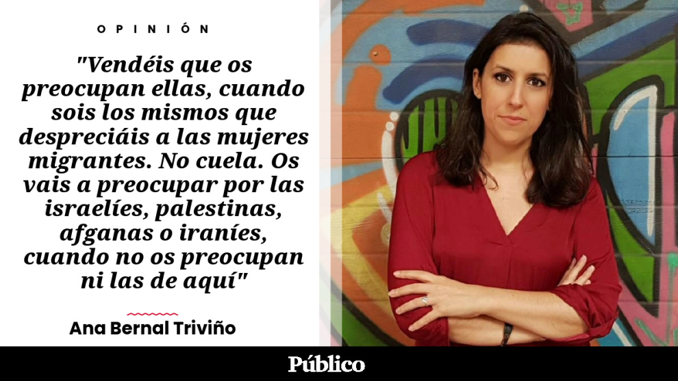 Vendéis que os preocupan ellas, cuando sois los mismos que despreciáis a las mujeres inmigrantes y sus familias. No cuela. Os vais a preocupar por las israelíes, palestinas, afganas o iraníes, cuando no os preocupan ni las de aquí. Otro paso más en vuestra instrumentalización de las mujeres para salvar vuestro pellejo. Es asqueroso. Usar a las víctimas de una guerra no para defender sus derechos sino para hacer política reaccionaria. Es la miseria infinita y sin escrúpulos del machismo español. Lecciones, de vosotros, ni una.