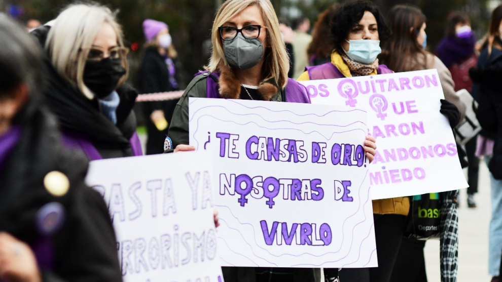Varias mujeres participan en una concentración feminista convocada por la Comisión 8M en la Plaza del Ayuntamiento, en Santander, Cantabria (España) a 8 de marzo de 2021.- Juan Manuel Serrano Arce / Europa Press