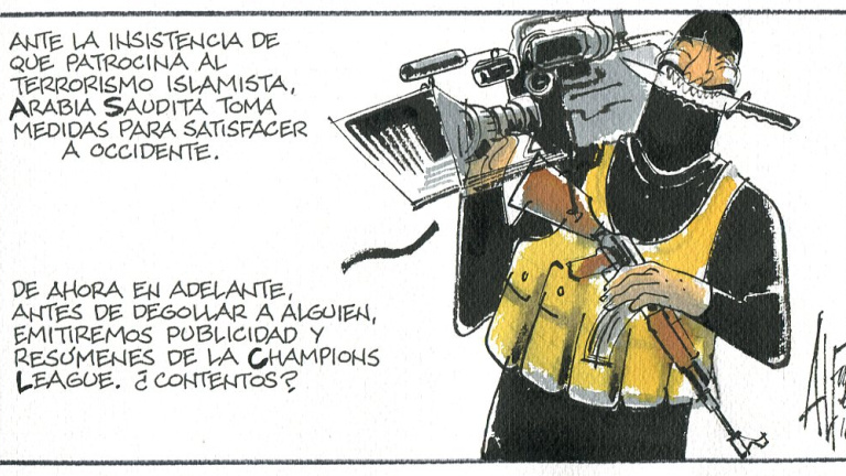 Viñetas ColumnasTribunasViñetas Este artículo se publicó hace 10 años.Arabia SaudíAlfons 12/10Tamaño de letraColor de fondoComparteComentaPúblico 12/10/2016 08:13Tamaño de letraColor de fondoComparte0ComentaComparteComentarios de nuestros socias/os¿Quieres comentar?Para ver los comentarios de nuestros socias y socios, primero tienes que iniciar sesión o registrarte. Escribe tu comentario Recuerda las normas de la comunidad.Enviar Descartar