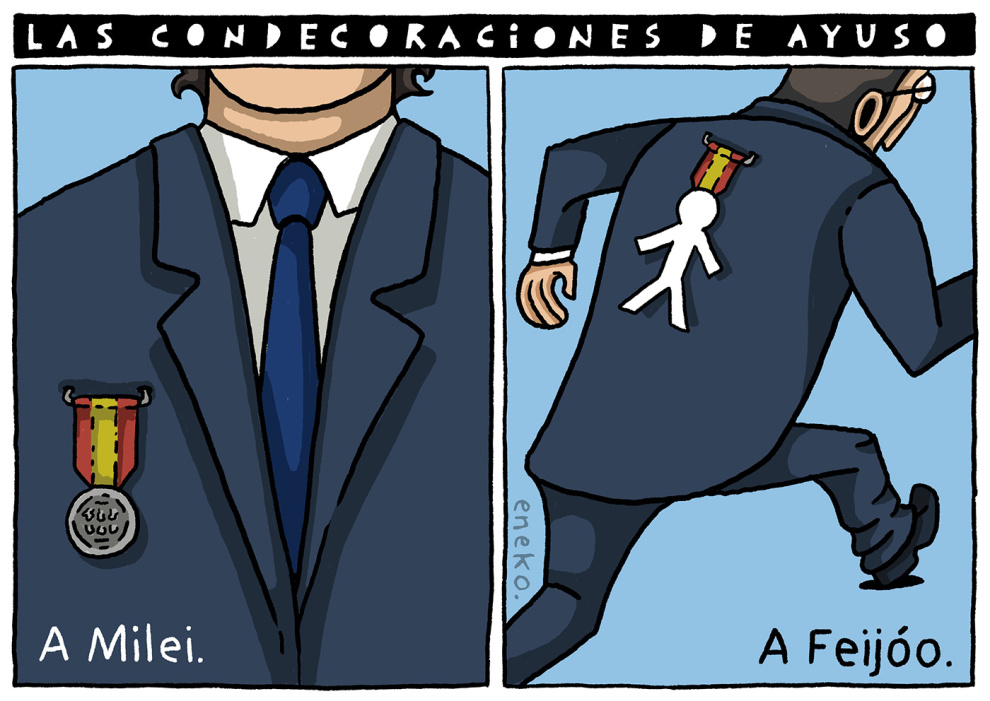Viñetas ColumnasTribunasViñetas Viñeta de Eneko 26/06/2024 00:15 Comparte Las condecoraciones de AyusoComentarios de nuestros socias/os¿Quieres comentar?Para ver los comentarios de nuestros socias y socios, primero tienes que iniciar sesión o registrarte. Escribe tu comentario Recuerda las normas de la comunidad.Enviar Descartar