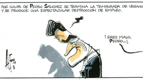 Viñetas ColumnasTribunasViñetas Este artículo se publicó hace 10 años.Pedro SánchezAlfonsTamaño de letraColor de fondoComparteComentaPúblico 02/09/2016 22:37-Actualizado a03/09/2016 08:00Tamaño de letraColor de fondoComparte0ComentaComparteComentarios de nuestros socias/os¿Quieres comentar?Para ver los comentarios de nuestros socias y socios, primero tienes que iniciar sesión o registrarte. Escribe tu comentario Recuerda las normas de la comunidad.Enviar Descartar
