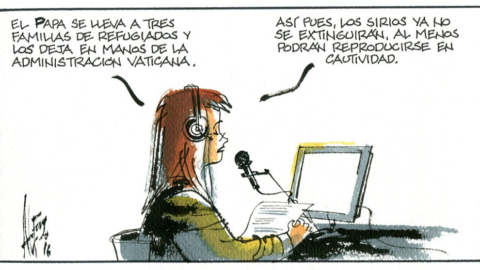 Viñetas ColumnasTribunasViñetas Este artículo se publicó hace 9 años.Refugiados y osos panda"Refugiados y osos panda"Tamaño de letraColor de fondoComparteComentaPúblico 18/04/2016 23:40-Actualizado a19/04/2016 07:00Tamaño de letraColor de fondoComparte0ComentaComparteComentarios de nuestros socias/os¿Quieres comentar?Para ver los comentarios de nuestros socias y socios, primero tienes que iniciar sesión o registrarte. Escribe tu comentario Recuerda las normas de la comunidad.Enviar Descartar