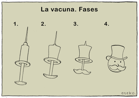 Viñetas ColumnasTribunasViñetas Viñeta de Eneko 17/11/2020 14:11 Comparte La vacuna. FasesComentarios de nuestros socias/os¿Quieres comentar?Para ver los comentarios de nuestros socias y socios, primero tienes que iniciar sesión o registrarte. Escribe tu comentario Recuerda las normas de la comunidad.Enviar Descartar
