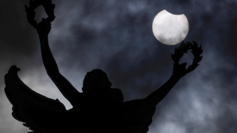 El primer eclipse anular de Sol de este año solo dejó ver el "anillo de fuego" que le caracteriza en el Polo Norte, zonas de Canadá y de Rusia, el resto de lugares donde era visible tuvieron que conformarse con un sol mordido o como una luna menguante y, en ocasiones, acompañado de nubes.