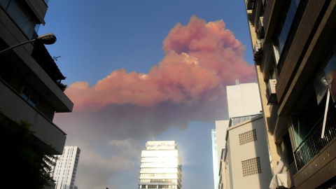 Una fuerte explosión en un almacén de la zona del puerto de Beirut ha sacudido este martes la capital libanesa, sobre la que se eleva una gran columna de humo de color rojizo.