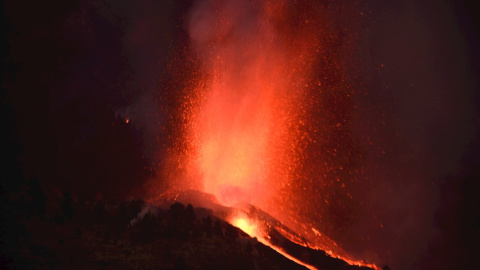 El monte Cumbre Vieja entra en erupción arrojando una columna de humo, ceniza y lava como se puede observar en esta imagen.