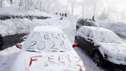 Varias pesonas disfrutan de la nieve de la localidad lucense de O Cebreiro. Hay lugares en España que renacen con las nevadas. Dos de ellos son Manzaneda, en Ourense, y Pedrafita, en Lugo. La 'capa blanca' convierte a estas zonas en un auténtico destino familiar y de amigos. Dice el refrán que año de nieves, año de bienes. Es el deseo de estos ayuntamientos del interior gallego, que no recuerdan haber visto en los últimos años una nevada igual a la vivida en este inicio de 2021.