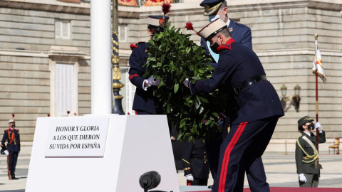 Felipe VI deposita una corona de flores en "honor y gloria a los que dieron su vida por España".