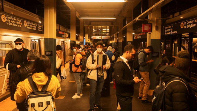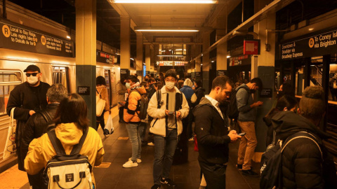 Ciudadanos abarrotan uno de los andenes de una estación de metro cercana a donde se ha producido el tiroteo en Brooklyn este 12 de abril de 2022 que ha dejado varios heridos.