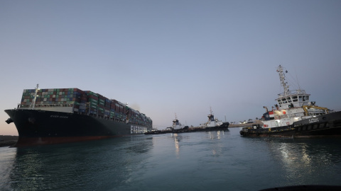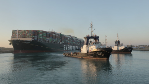 La Autoridad del canal de Suez ha confirmado que han logrado desencallar la nave Ever Given, que bloqueaba esta vía marítima causando una gran congestión, al corregir su orientación en un 80% y alejarlo de la orilla 102 metros.