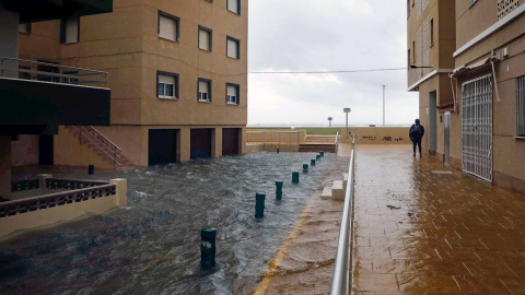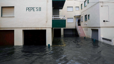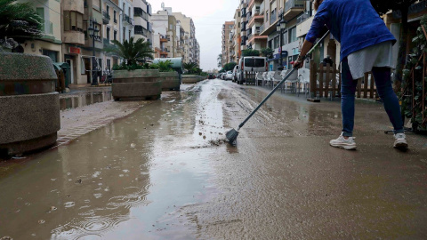 Una vecina retira agua de la calle en Cullera