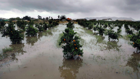 Campos de naranjos anegados