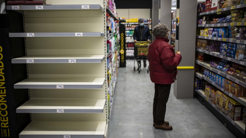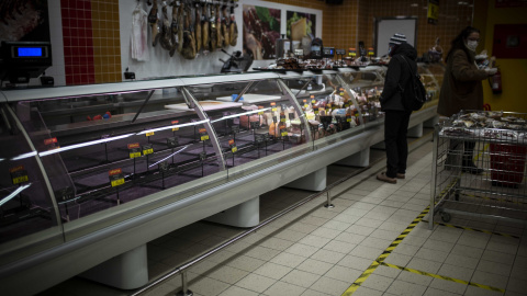 El suministro de carne y pescado frescos continúa sin poder abastecer a muchos supermercados de Madrid, como este de Carabanchel.