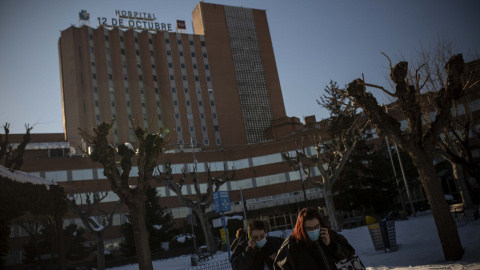 La nieve impide todavía el acceso a los aparcamientos para pacientes y trabajadores del Hospital 12 de Octubre de Madrid, aunque el metro, el cercanías y los autobuses llegan sin problemas hasta las inmediaciones.