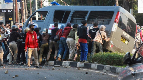Las tensiones en las protestas se produjeron al día siguiente de que la policía usara gases lacrimógenos y cañones de agua y detuviera al menos a 10 manifestantes en Serang y Bandung, también en Java.