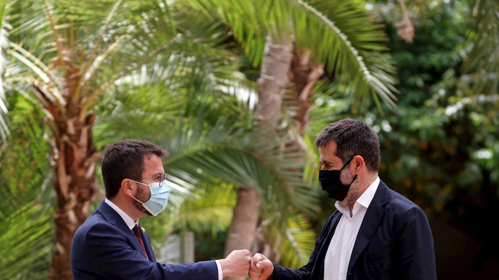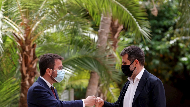 Aragonès presidirá un Govern con 14 departamentos, repartidos al 50 por ciento entre ERC y JxCat, según consta en el pacto anunciado.