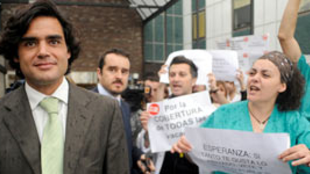 El consejero de Sanidad, Juan José Güemes , a su llegada a uno de los hospitales en los que fue abucheado. EFE
