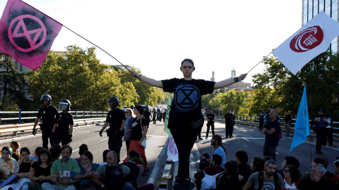 Y es que varios activistas ocuparon ayer un puente de la calle Joaquín Costa que se eleva por encima del Paseo de la Castellana, en las inmediaciones de Nuevos Ministerios. Muy cerca de allí otros tantos improvisaron ayer una acampada frente al Ministerio para la Transición Ecológica.