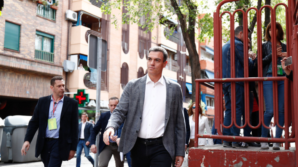 28 abril.- Se celebran las elecciones generales en las que Sánchez revalida la Presidencia con amplia victoria (123 escaños) y se abre la posibilidad de un pacto con Podemos. En la sede socialista de Ferraz los militantes le reciben con gritos de "¡Con Rivera, no!".