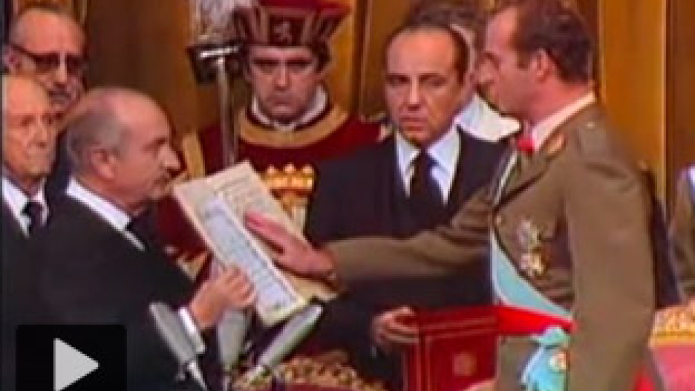 "Juro por Dios y sobre los santos evangelios, cumplir y hacer cumplir las leyes fundamentales del reino y guardar lealtad a los principios que informan el Movimiento Nacional". Con estas palabras exactas juraba el cargo Juan Carlos de Borbón el 22 de noviembre de 1975 ante las Cortes Españolas franquistas, dos días después de la muerte del dictador. Seguía así la hoja de ruta diseñada por Franco en la Ley de Sucesión a la Jefatura de Estado.