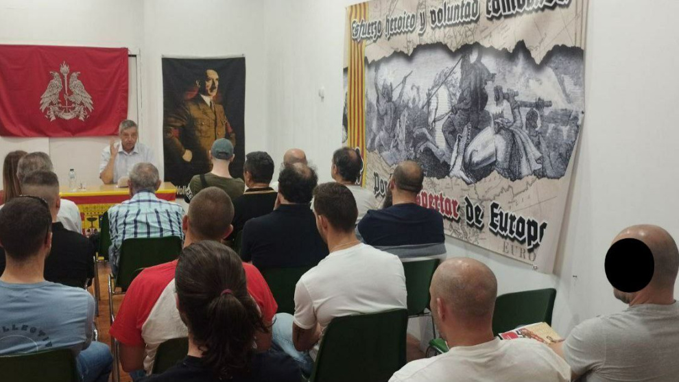 La "memoria" del grupo hitleriano correspondiente al año pasado deja en evidencia los límites de la Ley de Memoria Democrática. De momento no hay marco legal en España que permita prohibir las actividades de una asociación que se declara nacionalsocialista, coloca imágenes del genocida Adolf Hitler en sus eventos y promueve actos destinados a recordar a las principales figuras del nazismo.