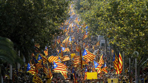 Esa antigua y monótona práctica, que invitaba a la escapada playera en épocas de bonanza económica, se revolucionó tras el varapalo —desde ciertos puntos de vista— que el Tribunal Constitucional propinó al nuevo Estatut en 2012, año en que la Diada se convirtió en una manifestación más que multitudinaria: millón y medio de personas proclamaron su disgusto ante el veredicto, y entre ellas abundaban ya las banderas estelades (la tradicional senyera cuatribarrada, pero con añadido de la estrella independentista). A partir de entonces, una plataforma de entidades cívicas y culturales, la Assemblea Nacional Catalana (ANC), asumió la labor de difundir a los cuatro vientos la causa de la creación de un Estado propio catalán, con iniciativas como la Via Catalana de 2013 —cadena humana que recorrió el Principat de extremo a extremo— y la V extendida esta tarde sobre las dos arterias viarias principales de Barcelona: la Gran Vía y la Avenida Diagonal.