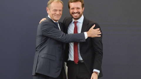 Mucho más claro fue Donald Tusk, expresidente del Consejo de Europa y de Polonia. A su lado tuvo el martes a Casado en Valladolid. "Como líder del PP Polaco, viene defendiendo la moderación y los principios liberales frente a los populismos radicales", dijo el líder popular sobre él en su presentación. En Polonia gobierna el partido de extrema derecha Ley y Justicia, aliados europeos de Vox. "Los gobiernos populistas son corruptos hasta la médula", dijo.