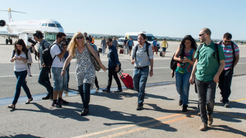En total, hasta cuarenta hombres y mujeres rotan para acompañar al líder de Podemos a lo largo de los casi 12.000 kilómetros que prevé recorrer en autobús, coche o avión. A ellos se suman también los otros dos miembros del equipo del director de campaña: la secretaria de Análisis Político y Programa y número dos al Congreso por Madrid, Carolina Bescansa, y el secretario de Organización y número uno por Sevilla, Sergio Pascual.