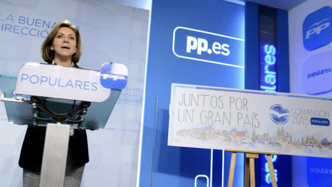 MADRID.- Tal y como estaba previsto, la secretaria general del PP ha comparecido en rueda de prensa este miércoles por la mañana para presentar el programa —aún sin cerrar— de la Convención Nacional que el partido celebra esta fin de semana. Pero María Dolores de Cospedal ha tenido que aparcar el motivo central de su aparición ante los medios para responder sobre los casos Bárcenas y Gürtel y su penetración en el PP.