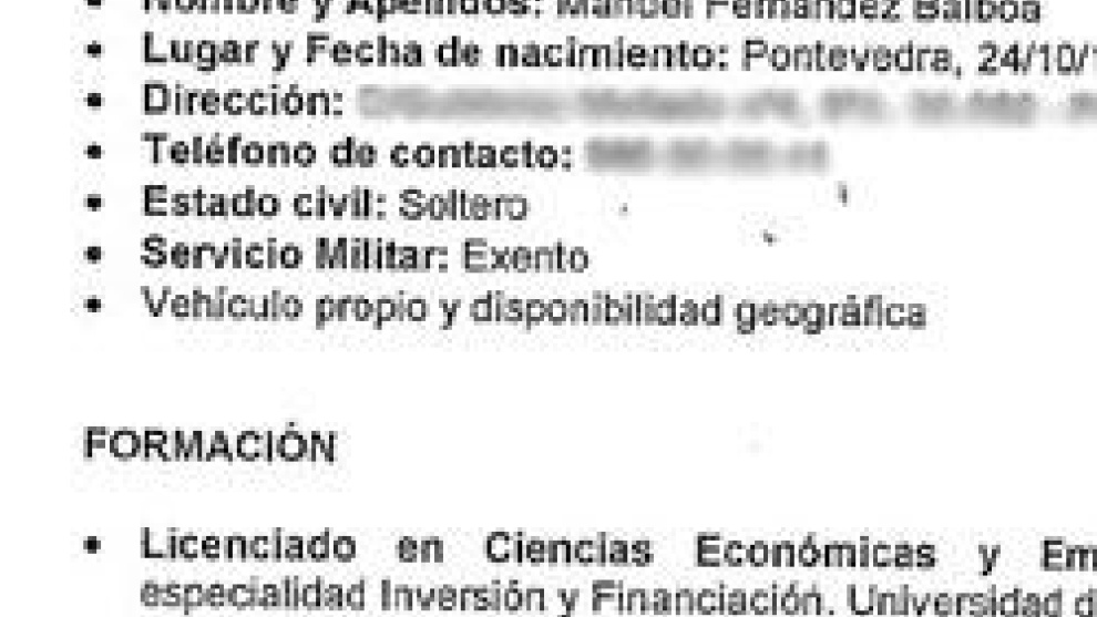 Cuando se postuló para alto cargo de la Cidade da Cultura, Fernández Balboa tenía 29 años de edad, una formación académica que incluía un máster MBA, y un bagaje profesional propio de un mileurista: un contrato como becario en una entidad financiera y un paso fugaz –y sobre el que no aportó las fechas concretas– por la delegación provincial de una constructora.