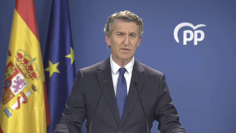 Unas horas después de conocerse la condena, Alberto Núñez Feijóo ofrecía una comparecencia sin preguntas de los periodistas en la que ha pedido a Pedro Sánchez que dimita y convoque elecciones generales: "García Ortiz ha escrito una página negra en la historia de la democracia española", ha asegurado.