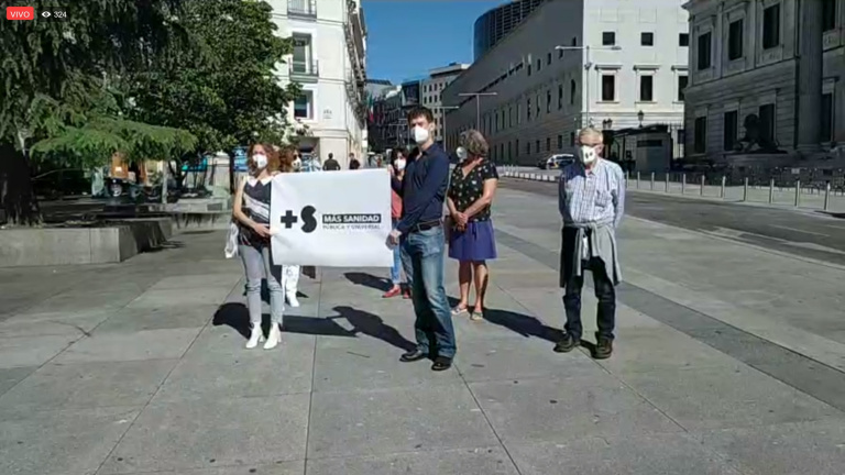 Acto a favor de la Sanidad pública y universal. Coincidiendo con la comparecencia del Ministro de Sanidad, Salvador Illa, en el Congreso, una veintena de organizaciones sociales y sindicatos solicitan la movilización de la ciudadanía.