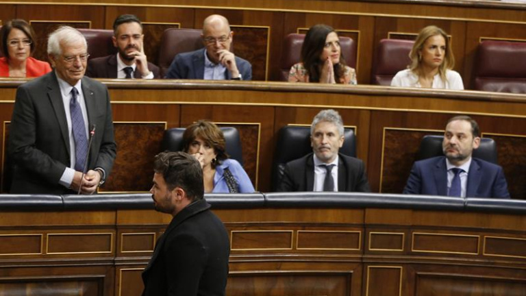 También ha hablado con la prensa Gabriel Rufián, expulsado del Pleno por la presidenta del Congreso por llamar "indigno" y "hooligan" a Borrell, quien ha sido más expeditivo que el propio Salvador: Rufián dice que Borrell miente y que debería dimitir.