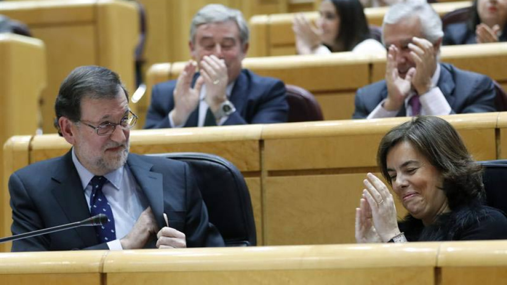 Las formaciones soberanistas, ERC y PDECAT, mantienen un duro cruce de acusaciones con Rajoy y la vicepresidenta del Gobierno en la sesión de control en el Senado sobre el proceso independentista