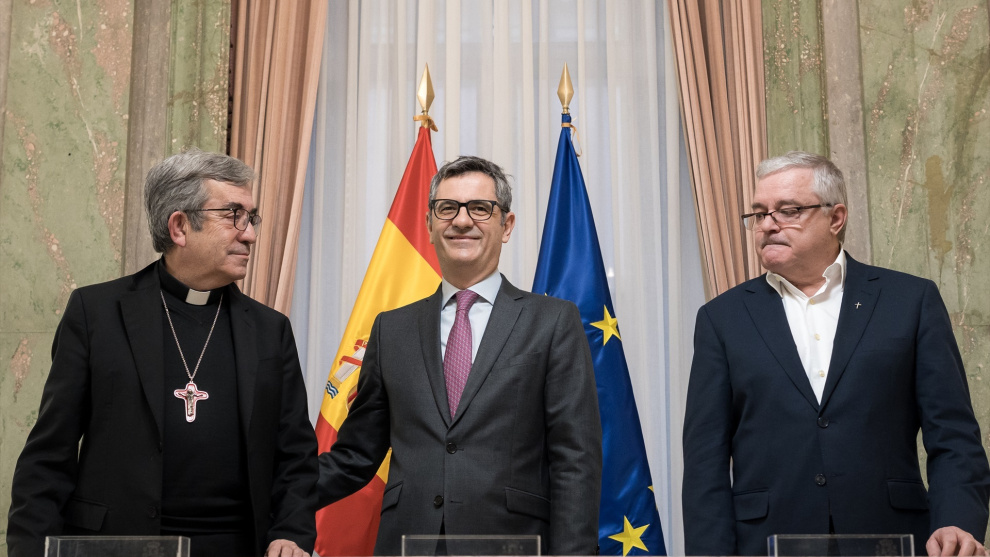 Un acuerdo que "salda una deuda histórica y moral" con las víctimas, que recibirán una "reparación justa". Es uno de los mensajes principales que ha trasladado este jueves el ministro de Presidencia y Justicia, Félix Bolaños, en su comparecencia ante los medios de comunicación para explicar el pacto alcanzado con la Iglesia respecto a los casos de pederastia y abusos sexuales.