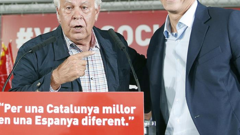 Le pusieron varias veces la luz roja para que se bajara del escenario e, incluso, se quejó de que le estaban poniendo los ojos rojos, pero Felipe González habló casi cuarenta minutos e hizo un discurso durísimo contra los independentistas y un llamamiento al voto desesperado, que pidió hasta “por favor”.