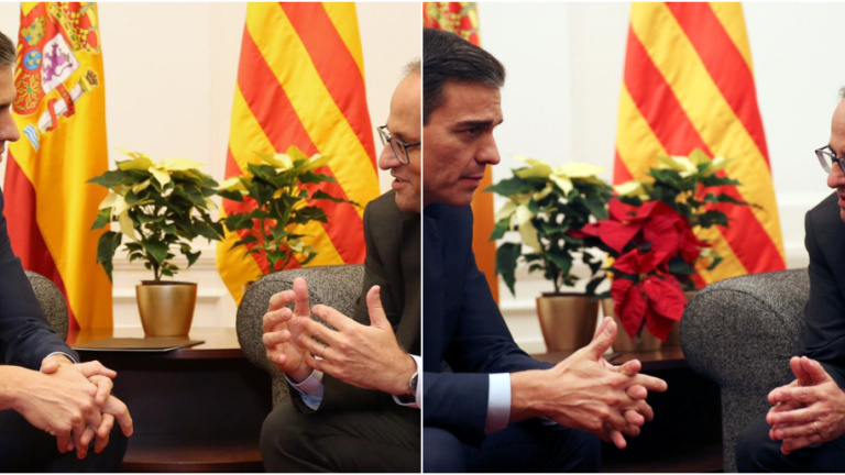 Nadie quiso comentar el cambio de decorado, que creó cierto malestar. Pero así se quedó hasta el final de la reunión, y en la foto a seis que se hizo al acabar el encuentro (Carmen Calvo Meritxell Batet, Pere Aragonés y Elsa Artadi posaron con Sánchez y Torra), las flores rojas seguían estando encima de la mesa.