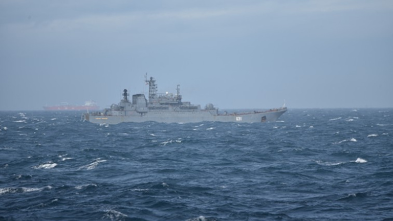 La unidad naval española recibió la misión de localizar y realizar la monitorización de estas embarcaciones rusas, que navegaban desde el Atlántico en demanda del Mediterráneo oriental. La interceptación se ha llevado a cabo en la vertiente mediterránea del Estrecho, donde comenzó su misión de vigilancia del LSTM-31 'Alexander Otrakovskiy'.