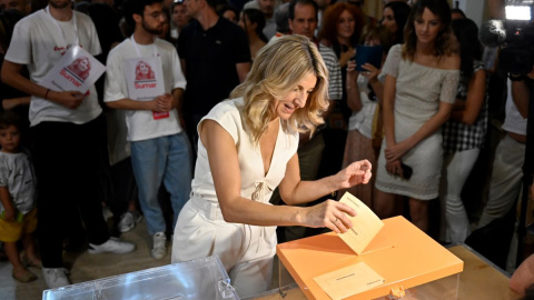 La candidata a la presidencia por Sumar, Yolanda Díaz, ha votado acompañada de su familia en la Escuela Técnica Superior de Ingenieros de Minas de Madrid. La ministra de Trabajo ha recordado que "el derecho a voto no ha caído del cielo" y ha pedido a la ciudadanía "que vaya a votar".