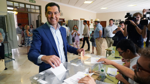 El presidente del PP andaluz y de la Junta, Juanma Moreno, ha votado en un colegio electoral de Málaga, provincia en la cual se deciden 11 asientos del Congreso.