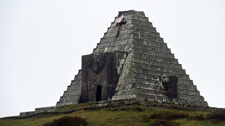 La pirámide, situada en el Puerto del Escudo (Burgos), fue declarada Bien de Interés Cultural por el Consejo de Gobierno de la Junta de Castilla y León para "preservar así su valor histórico". El vicepresidente del Ejecutivo autonómico, Juan García-Gallardo, visitó el monumento y se mostró "tranquilo" con su decisión porque, según palabras propias, "no hay que mirar la historia con rencor". Castilla y León es una de las comunidades que más exhumaciones de víctimas de la dictadura practicó durante los últimos años.