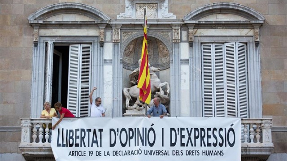 El organismo arbitral atiende así la denuncia planteada por Ciudadanos la semana pasada. Precisamente el pasado viernes, por orden del Tribunal Superior de Justicia de Catalunya (TSJC) fue retirada de la fachada principal del Palacio de la Generalitat una pancarta que aludía a los "presos políticos y exiliados".