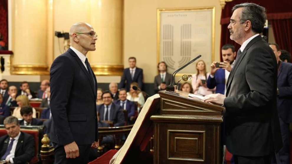 En el informe se concluye que el senador Romeva "se halla ya, de hecho, suspenso ex lege y por lo tanto es suficiente constatar esta situación y extraer las consecuencias jurídicas correspondientes". "La Mesa del Senado es competente para dar efectividad a la suspensión", concluyen los letrados.