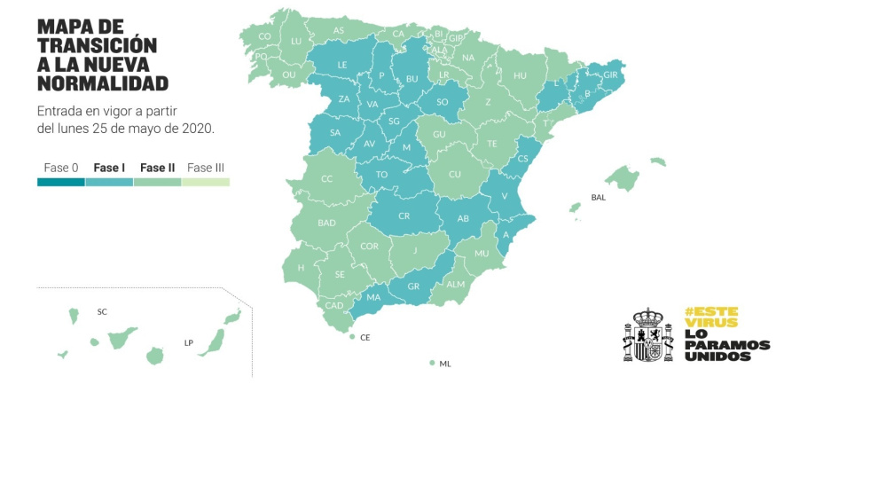 - Illes Balears: Ibiza, Menorca y Mallorca. Formentera ya pasó a esta fase este lunes 18 de mayo.
