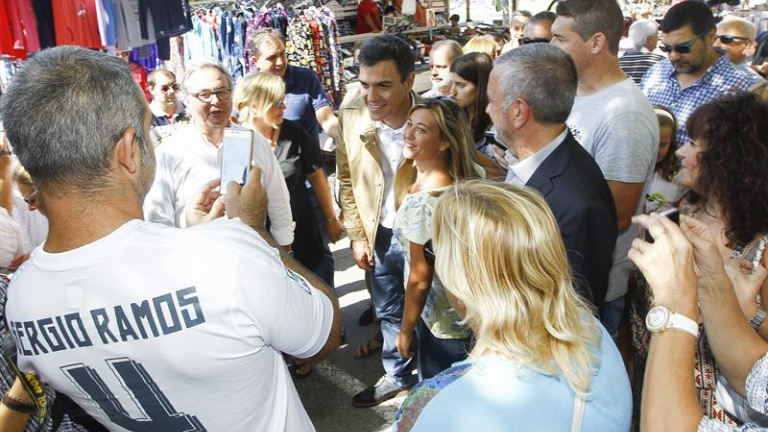 El líder del PSOE llegó el miércoles para acudir al mitin con Felipe González y no parará de hacer actos hasta el final de la campaña