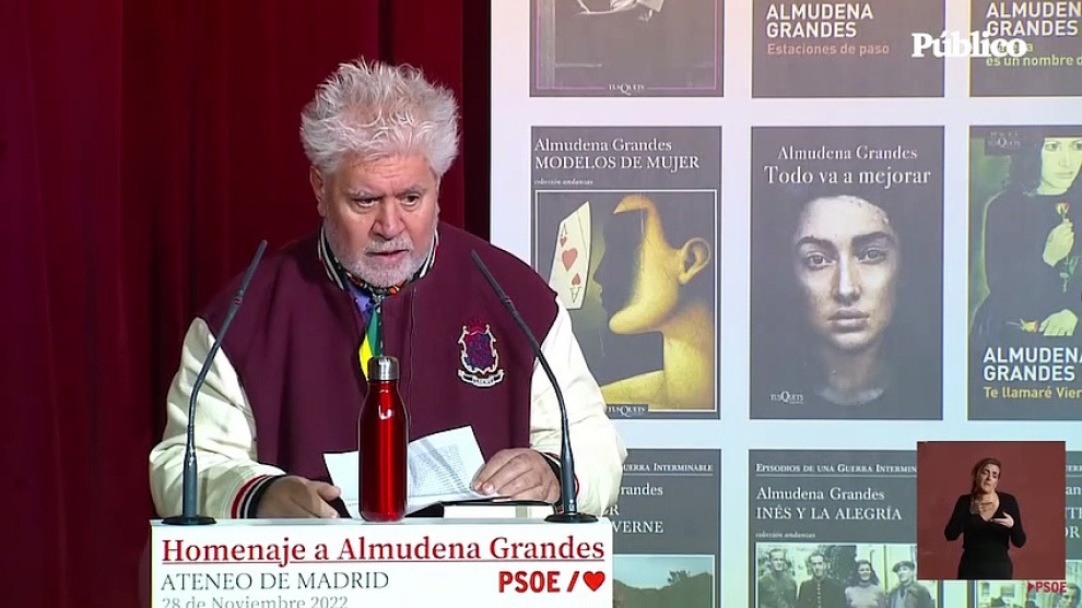 El turno le llegaba ahora a una emocionada Mónica Grandes, hermana de la escritora y a Mauro Caffarato, su hijo. Eligieron la lectura de uno de los últimos artículos que escribió Grandes. El director de cine Pedro Almodóvar les dio el relevo. "Almudena Grandes ha hecho más por la memoria que todos los Gobiernos de este país", dijo ante Sánchez añadiendo acto seguido que es bienvenida la Ley de Memoria Democrática, que ha entrado en vigor de forma reciente.